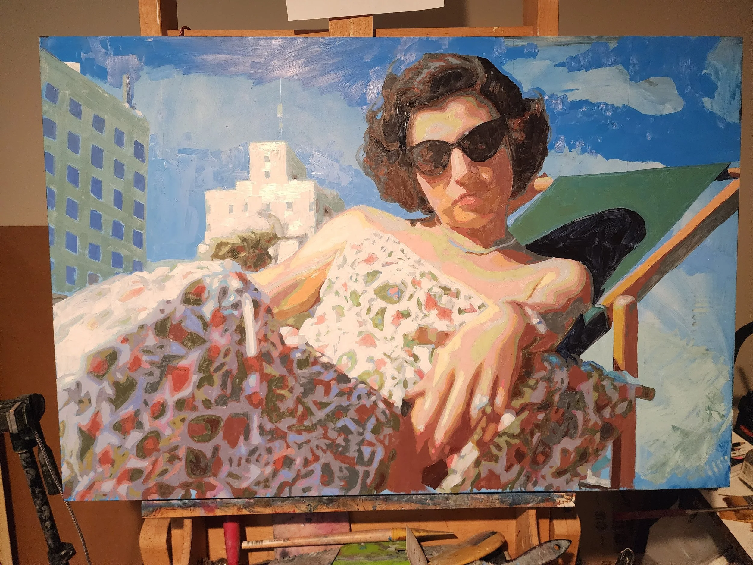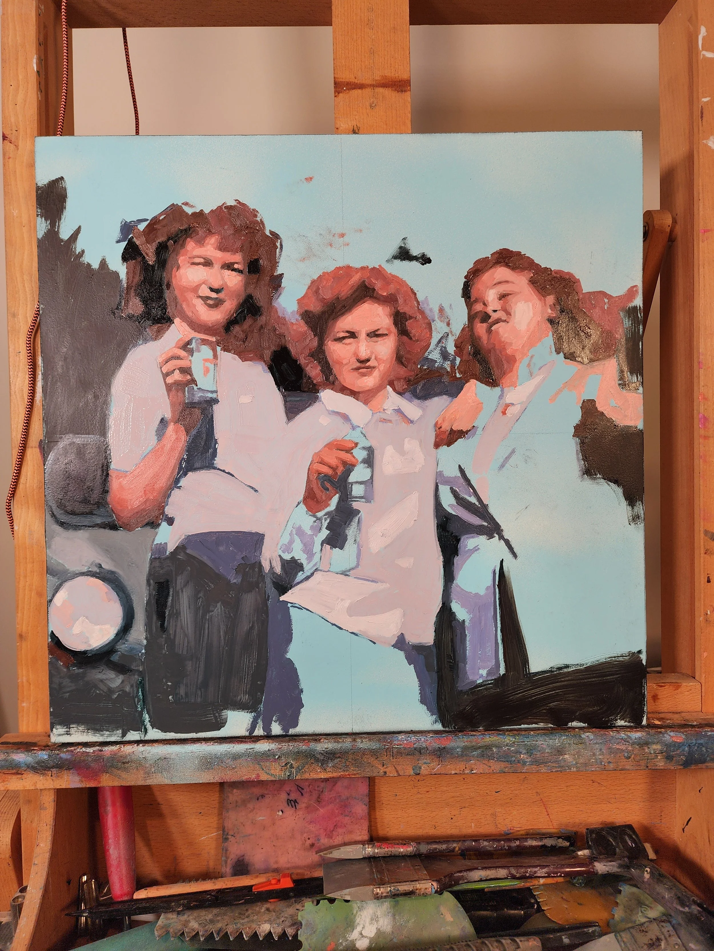 working title: The Gang I Want To Join in the Zombie Apocolypse | 18x18 oil on cradled panel